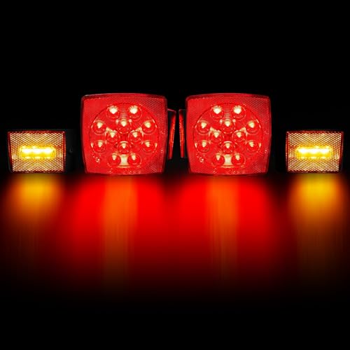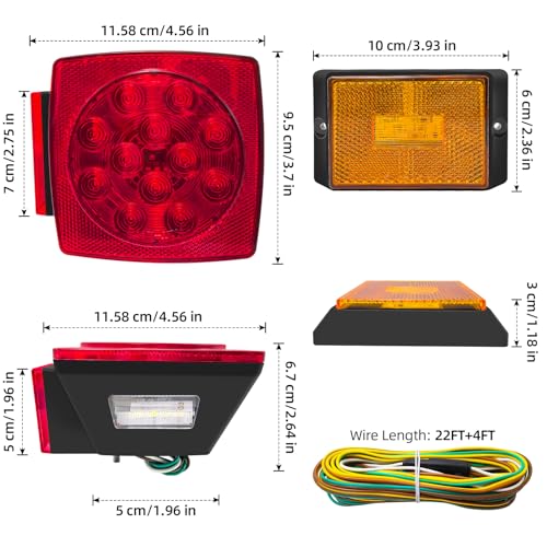 Transform your towing experience with our 12V LED Submersible Trailer Lights Kit, designed specifically for trailers under 80 inches. This comprehensive kit includes everything you need for installation: 2 high-performance square lights, 2 amber clearance lights, a sturdy license plate bracket, an extensive 26-foot trailer wiring harness, and various stainless steel mounting hardware. The multifunctional lights serve as stop, turn, tail, and side marker lights, providing full compliance with DOT safety standards. With an IP67 waterproof rating and a unique drainage port design, you can trust these lights to withstand harsh weather conditions and ensure maximum visibility during your night journeys. Easy to install with two mounting options, our trailer lights are suitable for boats, RVs, trucks, utility trailers, and more. Enjoy brighter, safer towing with this exceptional light kit that draws minimal amperage yet offers optimal brightness and longevity compared to traditional incandescent lamps.