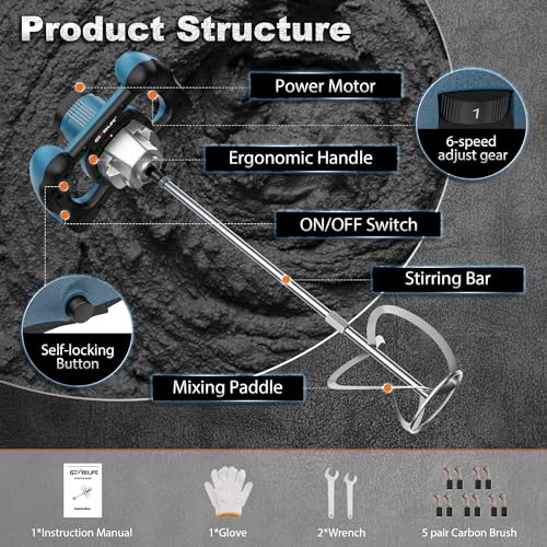 Experience the power and efficiency of our 2400W Handheld Electric Cement Mixer, engineered for seamless mixing of cement, mortar, paint, and fodder. Featuring a robust all-copper motor, this mixer offers a consistent power output and is designed for heavy-duty use. With six adjustable speeds (ranging from 350 RPM to 950 RPM), you can easily customize the mixing process to achieve your desired consistency without the mess. Its sturdy nylon motor shell and carbon steel mixing bar ensure durability, while the ergonomic design with double handles minimizes finger fatigue during operation. Plus, cleaning is a breeze; the stainless steel components can be rinsed easily. Included with your purchase are mixing paddles, wrenches, extra carbon brushes, and gloves, ensuring you have everything you need to get started. Whether you’re a professional or DIY enthusiast, this electric cement mixer is an essential addition to your toolkit.