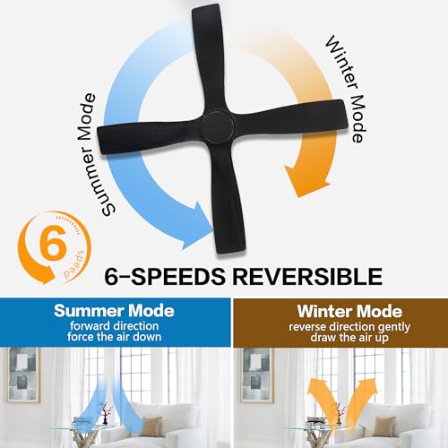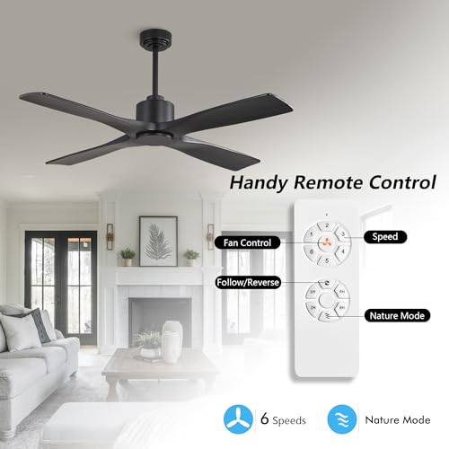 Elevate your indoor and covered outdoor spaces with this sleek 54″ modern ceiling fan, expertly designed with four carved solid wood blades and a powerful 6-speed reversible DC motor. Crafted for those who appreciate a blend of style and functionality, this fan delivers efficient air circulation while maintaining whisper-quiet operation, making it ideal for bedrooms or living rooms. Its matte black finish beautifully contrasts with the natural wood tones, adding a touch of sophistication to any decor. Featuring easy remote control access, you can effortlessly adjust the fan’s speed and reverse its motion to circulate warm air during colder months. With energy savings of up to 70% compared to traditional AC motors, this ceiling fan not only enhances comfort but also promotes energy efficiency in your home. Enjoy the peace of mind that comes with its ETL certification and durability provided by warp-resistant wood blades, ensuring a long product lifespan.