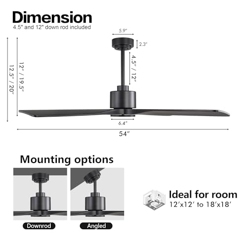 54″ Modern DC Ceiling Fan with Solid Wood Blades – Energy Efficient & Quiet