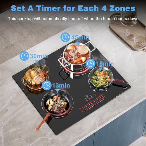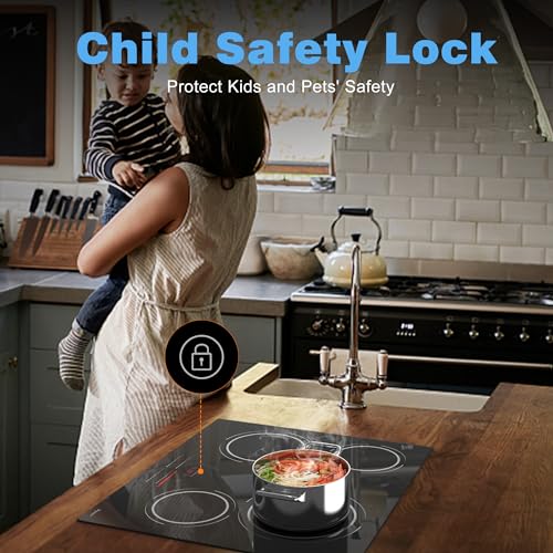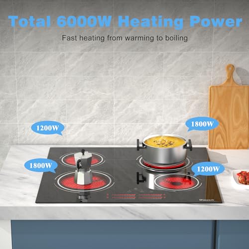 Elevate your culinary experience with the Disaenvir 24-Inch Electric Cooktop, designed for the modern kitchen. This sleek drop-in ceramic stove top offers a total of 6000W heating power, including four efficient burners with adjustable power levels. Each burner offers 9 heating settings, allowing you to braise, fry, simmer, and roast with precision. Safety is paramount, and this cooktop features a safety lock, automatic shut-off, and a residual heat indicator, making it perfect for family use. Its elegant tempered glass surface is scratch and heat-resistant, ensuring easy maintenance and a sophisticated look. This cooktop is ideal for various cookware materials, from stainless steel to ceramic, making it versatile for all your cooking needs. Experience the perfect blend of efficiency and safety with the Disaenvir Electric Cooktop today!