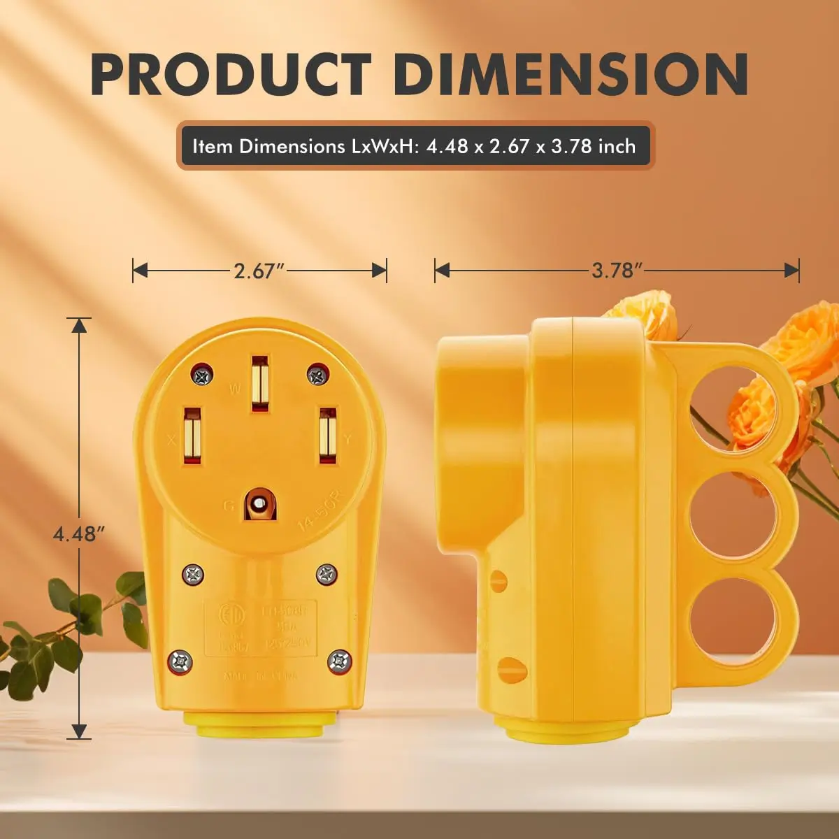 Upgrade your RV, camper, or generator setup with our powerful NEMA 14-50R 50 Amp RV Plug. Designed for 125/250V applications, this heavy-duty replacement female plug is built to provide reliable performance in outdoor conditions. Featuring an ergonomic grip handle, it ensures ease of use and connection stability at all times. Whether you’re powering your RV at a campground or connecting to a generator, this ETL listed plug ensures safety and durability, making it perfect for your high-demand electrical needs. Enjoy hassle-free connectivity and peace of mind with a product engineered for longevity and reliability.